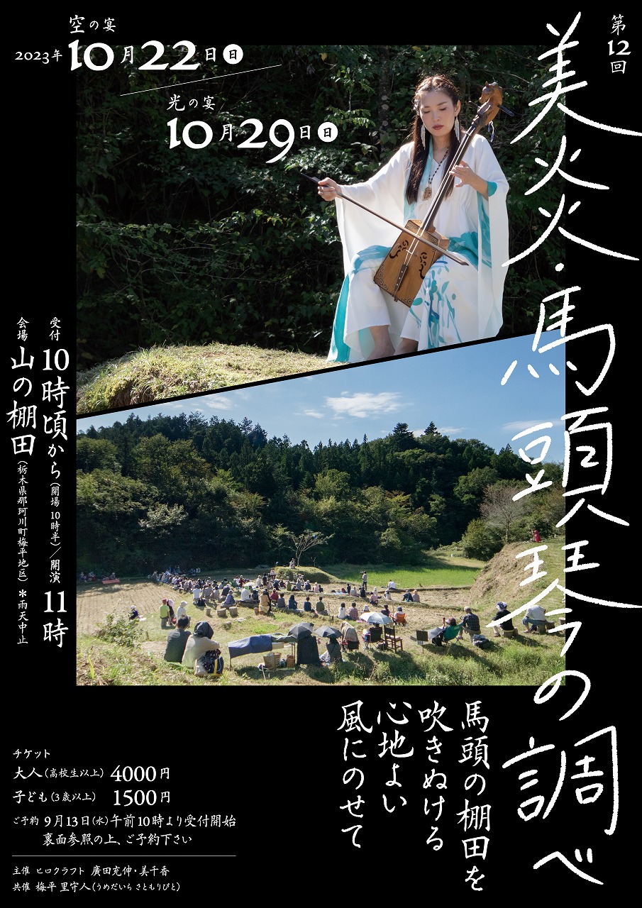 ●演奏会場では、収穫後の田んぼと畦道、山の斜面などが客席(自由席)となります。